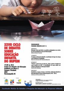 A palestra “Arquitetura, espaços, tempo e materiais: a Edução Infantil na Rede Municipal de Ensino de Florianópolis (1976-2012)” faz parte do XXVII Ciclo de Debates sobre Educação Infantil, promovido pelo Núcleo de Estudos e Pesquisas da Educação na Pequena Infância (Nupein).